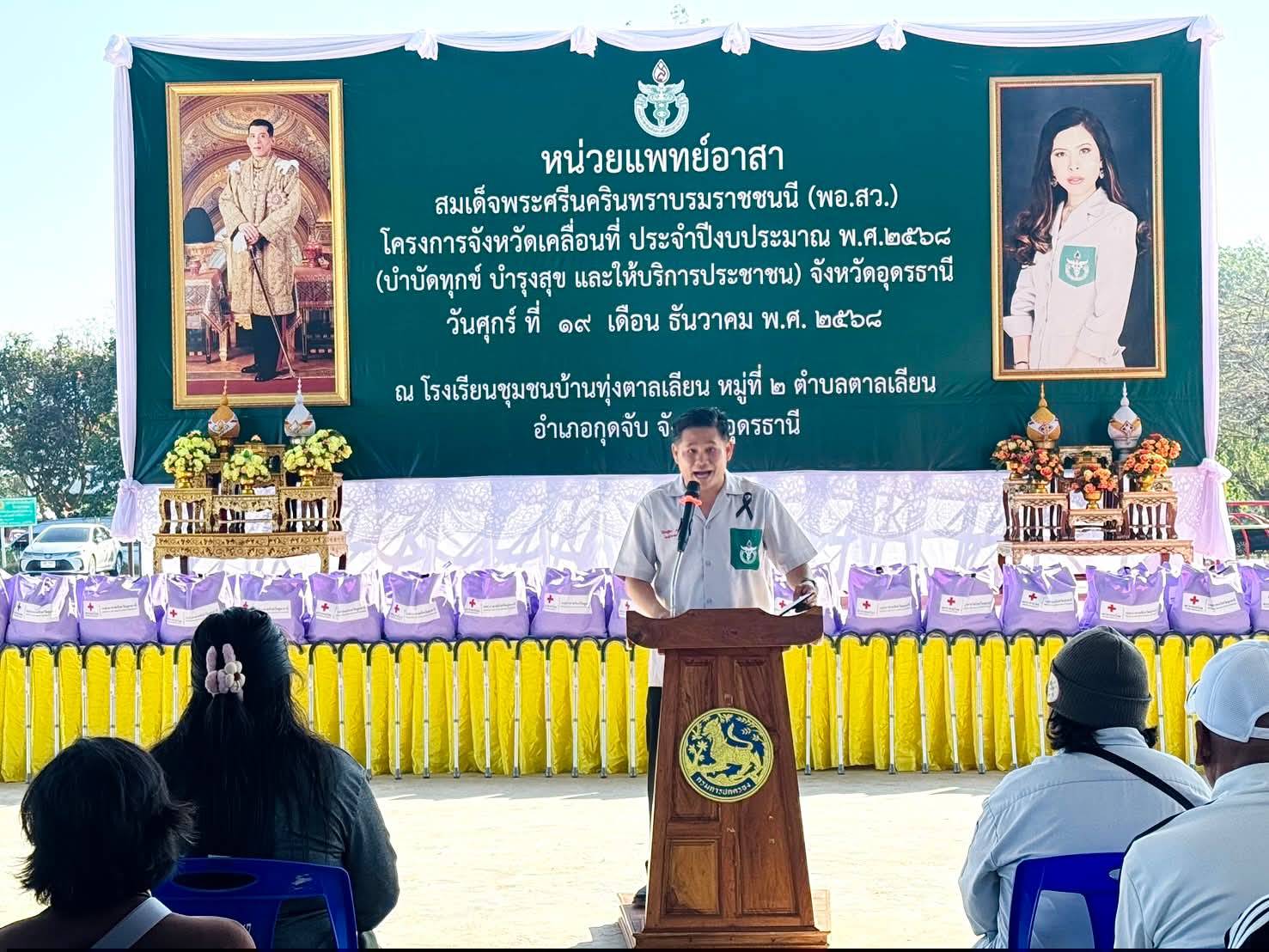 นายพิสิษฐ์ชัย อภัยปิยกุล รองผู้ว่าราชการจังหวัดอุดรธานี เป็นประธานเปิดกิจกรรมจังหวัดเคลื่อนที่ ประจำปีงบประมาณ พ.ศ. 2569 (บำบัดทุกข์ บำรุงสุข และให้บริการประชาชน) จังหวัดอุดรธานี เพื่อออกให้บริการด้านการรักษาพยาบาล และอำนวยความสะดวกแก่ประชาชนในพื้นที่ ในการนี้ นายฐิติณัฏฐ์ มุณีรัตน์ อุตสาหกรรมจังหวัดอุดรธานี มอบหมายให้ นายอดิศร ตาลน้อย หัวหน้ากลุ่มส่งเสริมและพัฒนาอุตสาหกรรม พร้อมด้วยเจ้าหน้าที่กลุ่มส่งเสริมและพัฒนาอุตสาหกรรม ลงพื้นที่เข้าร่วมกิจกรรมจังหวัดเคลื่อนที่ เพื่อประชาสัมพันธ์ ให้คำปรึกษาแนะนำแก่ประชาชนและผู้ประกอบการ อาทิ การขอรับรองมาตรฐานผลิตภัณฑ์ชุมชน (มผช.) การรับรองมาตรฐานอุตสาหกรรมเอส (มอก.เอส) การเข้าถึงแหล่งเงินทุนภายใต้กองทุนพัฒนาเอสเอ็มอีตามแนวประชารัฐ ตลอดจนการพัฒนาผลิตภัณฑ์ ภายใต้โครงการส่งเสริมและพัฒนาศักยภาพของอุตสาหกรรมในภูมิภาค ในวันศุกร์ที่ 19 ธันวาคม 2568 ณ โรงเรียนชุมชนบ้านทุ่งตาลเลียน ตำบลตาลเลียน อำเภอกุดจับ จังหวัดอุดรธานี