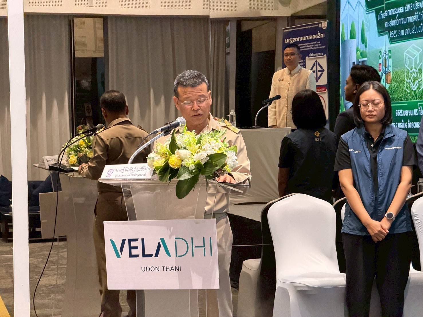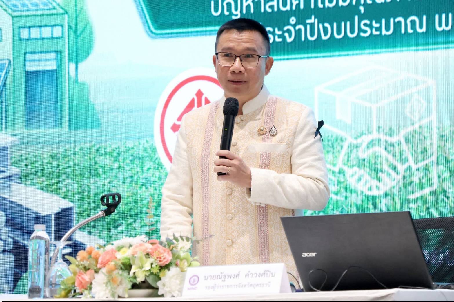 นายณัฐพงศ์ คำวงศ์ปิน รองผู้ว่าราชการจังหวัดอุดรธานี ให้เกียรติเป็นประธานในพิธีเปิดกิจกรรมการอบรมเชิงปฏิบัติการหลักสูตร “สอจ.ต่อยอดเครือข่ายภาครัฐและภาคเอกชน” ภายใต้โครงการส่งเสริม SMEs และบูรณาการแก้ไขปัญหาสินค้าไม่มีคุณภาพจากต่างประเทศ ประจำปีงบประมาณ พ.ศ. 2569 โดยมีนายฐิติณัฏฐ์ มุณีรัตน์ อุตสาหกรรมจังหวัดอุดรธานี เป็นผู้กล่าวรายงาน การจัดกิจกรรมในครั้งนี้เป็นความร่วมมือบูรณาการระหว่างหน่วยงานภาครัฐและภาคเอกชน ร่วมกับสำนักงานมาตรฐานผลิตภัณฑ์อุตสาหกรรม (สมอ.) มีวัตถุประสงค์เพื่อเสริมสร้างและต่อยอดเครือข่ายความร่วมมือในการแก้ไขปัญหาสินค้าไม่มีคุณภาพจากต่างประเทศ พร้อมทั้งคุ้มครองผู้บริโภคให้สามารถเลือกใช้สินค้าที่มีคุณภาพและได้มาตรฐาน โดยจัดขึ้นในวันที่ 20 เมษายน 2569 ณ ห้องยามดี โรงแรมเวลาดี ตำบลหมากแข้ง อำเภอเมืองอุดรธานี จังหวัดอุดรธานี